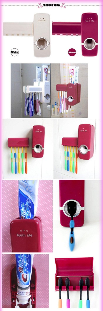 Dávkovač na zubnú pastu a držiak na kefky. Nie sú potrebné žiadné batérie. Automatické podávanie zubnej pasty jedným dotykom.